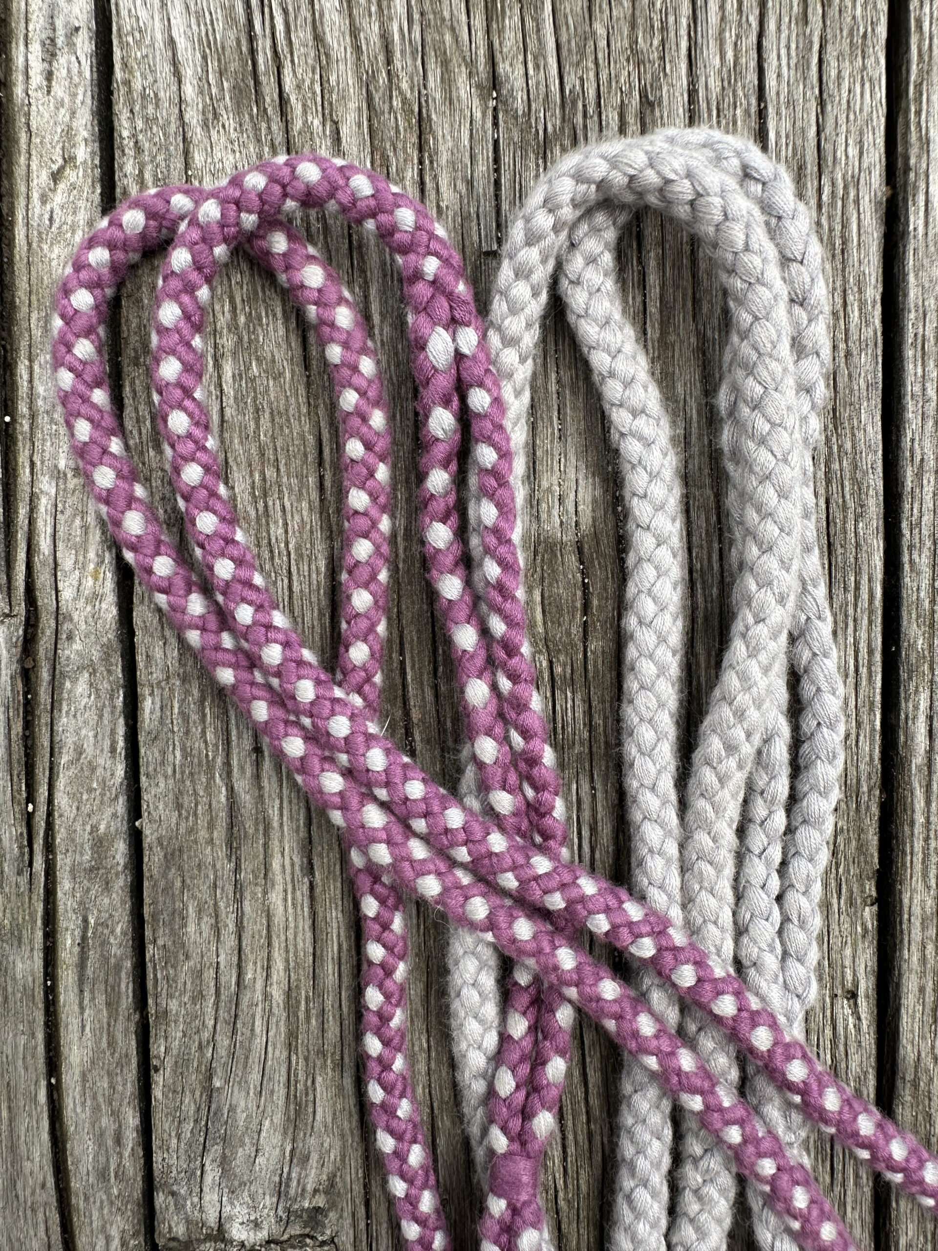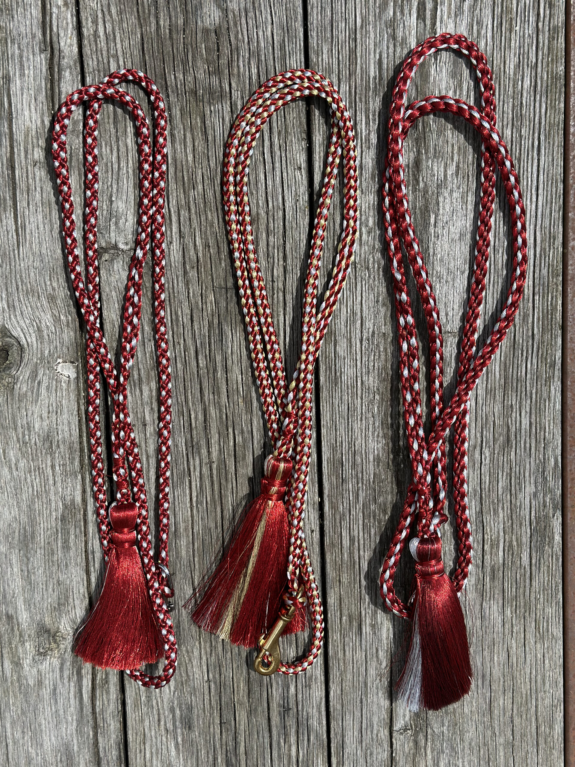 Pensées pour la présentation en exposition canine, ces laisses offrent une prise en main agréable et un contact doux pour le chien. Je ne fabrique pas de laisse lasso simple sans arrêtoir.