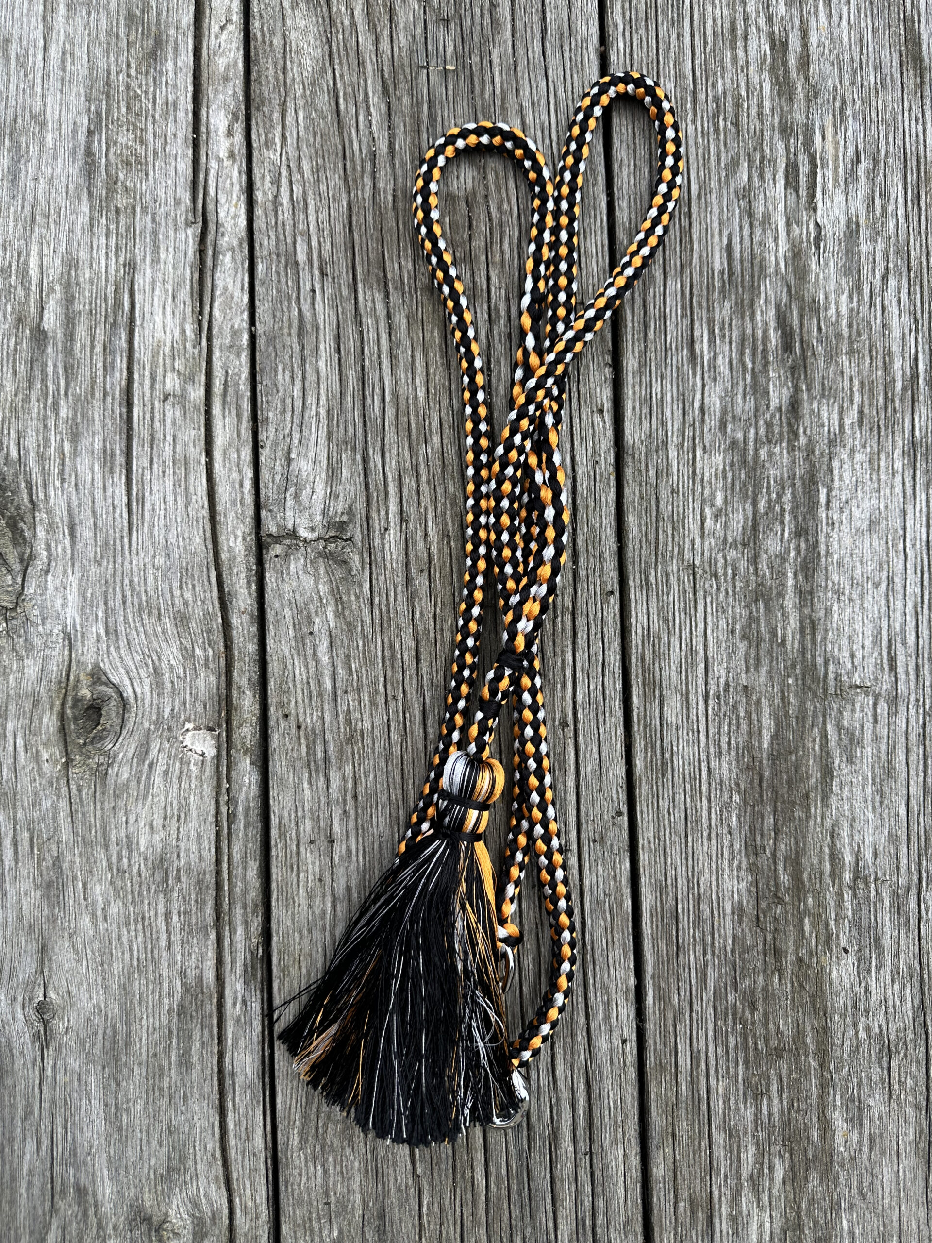 Je m’en sers pour fabriquer mes laisses d’exposition à la main, fil par fil, certaines laisses peuvent avoir plus de 5 à 6 kilomètres de fil. Le marudai me permet de jouer sur les textures, les motifs et la régularité de la tresse, tout en respectant un savoir-faire ancestral. C’est grâce à lui que chaque laisse est à la fois résistante, élégante, et unique.